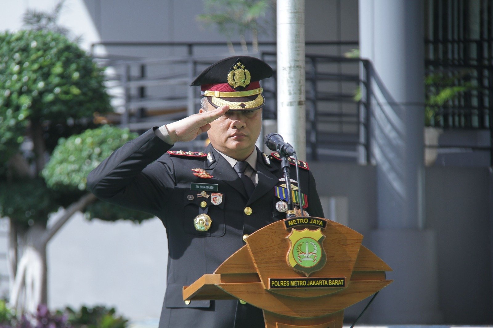 Kapolres Metro Jakarta Barat Kombes Pol Twedi Aditya Bennyahdi, S.Sos., S.I.K., M.H. melaksanakan upacara di Kantor Wali Kota Jakarta Barat, sementara di halaman Polres Metro Jakarta Barat upacara dipimpin oleh Wakapolres Metro Jakarta Barat, AKBP Dr. Tri Suhartanto, S.H., M.H., M.Si., yang bertindak sebagai inspektur upacara.