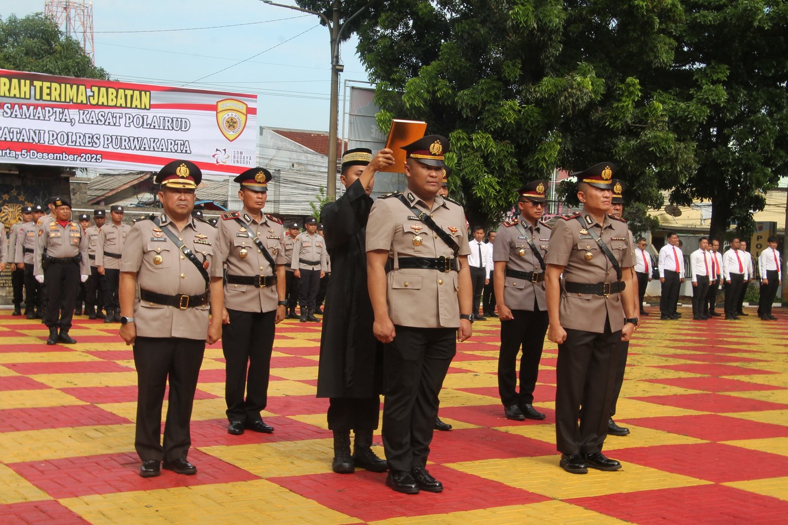 Upacara Sertijab dipimpin langsung oleh Kapolres Purwakarta, AKBP I Dewa Putu Gede Anom Danujaya, serta dihadiri oleh para Pejabat Utama Polres, Kapolsek jajaran, dan seluruh personel Polres Purwakarta.