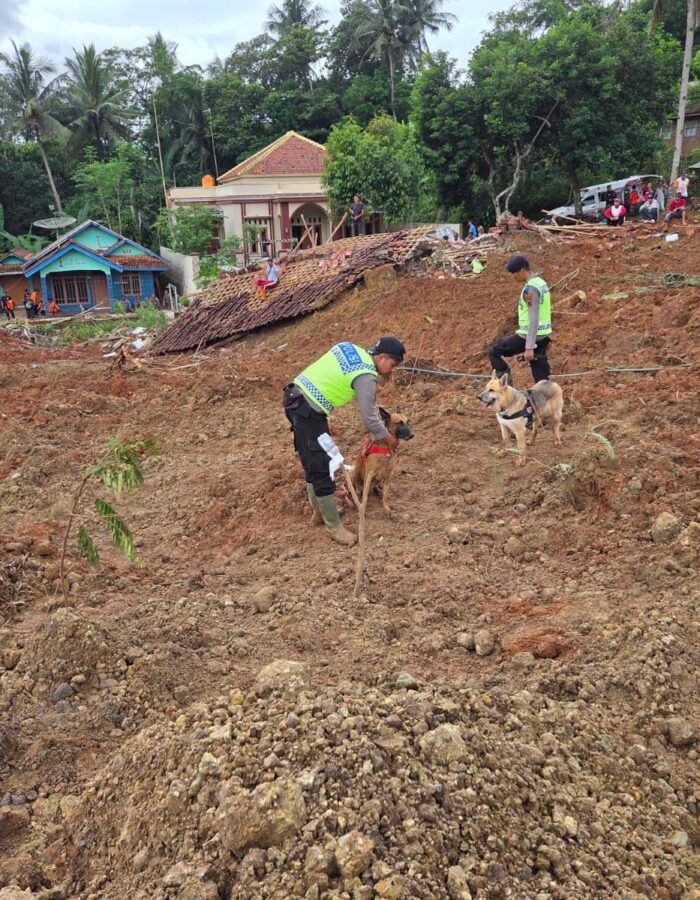 BATAVIAINEWS.COM Jakarta – Polri memperkuat upaya pencarian korban tanah longsor di Desa Cipendeuy, Kecamatan Majenang, Kabupaten Cilacap, Jawa Tengah, dengan menurunkan ratusan personel dan tim anjing pelacak. Total 205 personel diterjunkan pada hari kedua operasi SAR untuk menyisir lokasi terdampak.
