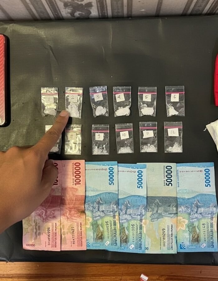 “Dari hasil penggeledahan, petugas mengamankan 12 paket sabu dengan total berat sekitar 7,865 gram, serta barang pendukung lainnya seperti plastik klip, uang tunai, dan alat komunikasi,” jelas AKP Bambang.