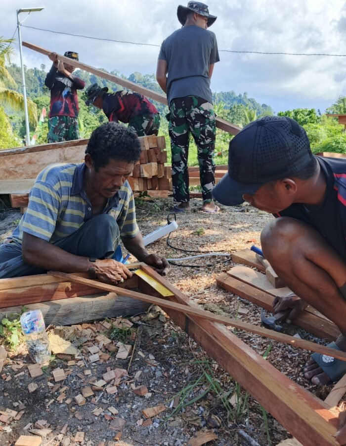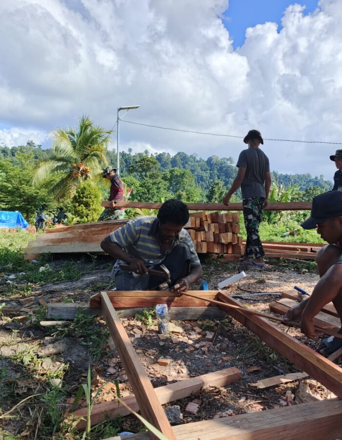 BATAVIAINEWS.COM [ MANOKWARI UTARA, 23 April 2026 ] – Kegiatan TNI Manunggal Membangun Desa (TMMD) ke-128 yang dilaksanakan oleh Kodim 1801/Manokwari terus menunjukkan progres yang signifikan. Hingga hari ini, Satgas TMMD bersama masyarakat setempat tengah menggenjot pengerjaan sasaran fisik utama berupa pembangunan rumah layak huni.