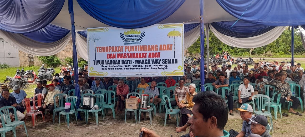 Ketua Punyimbang Adat Tiyuh Langan Ratu, Abu Bakar Gelar Suntan Lama, menegaskan bahwa perjuangan ini merupakan hasil kesepakatan seluruh masyarakat adat dari enam Kebuaiyan di Tiyuh Langan Ratu, Marga Way Semah.