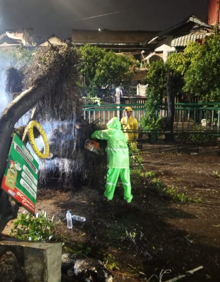BATAVIAINEWS.COM Jakarta Barat – Polsek Palmerah, Polres Metro Jakarta Barat, bergerak cepat menindaklanjuti pengaduan masyarakat yang masuk melalui layanan darurat 110 terkait kejadian pohon tumbang yang menghalangi akses jalan di wilayah Palmerah, Jumat (2/1/2026).
