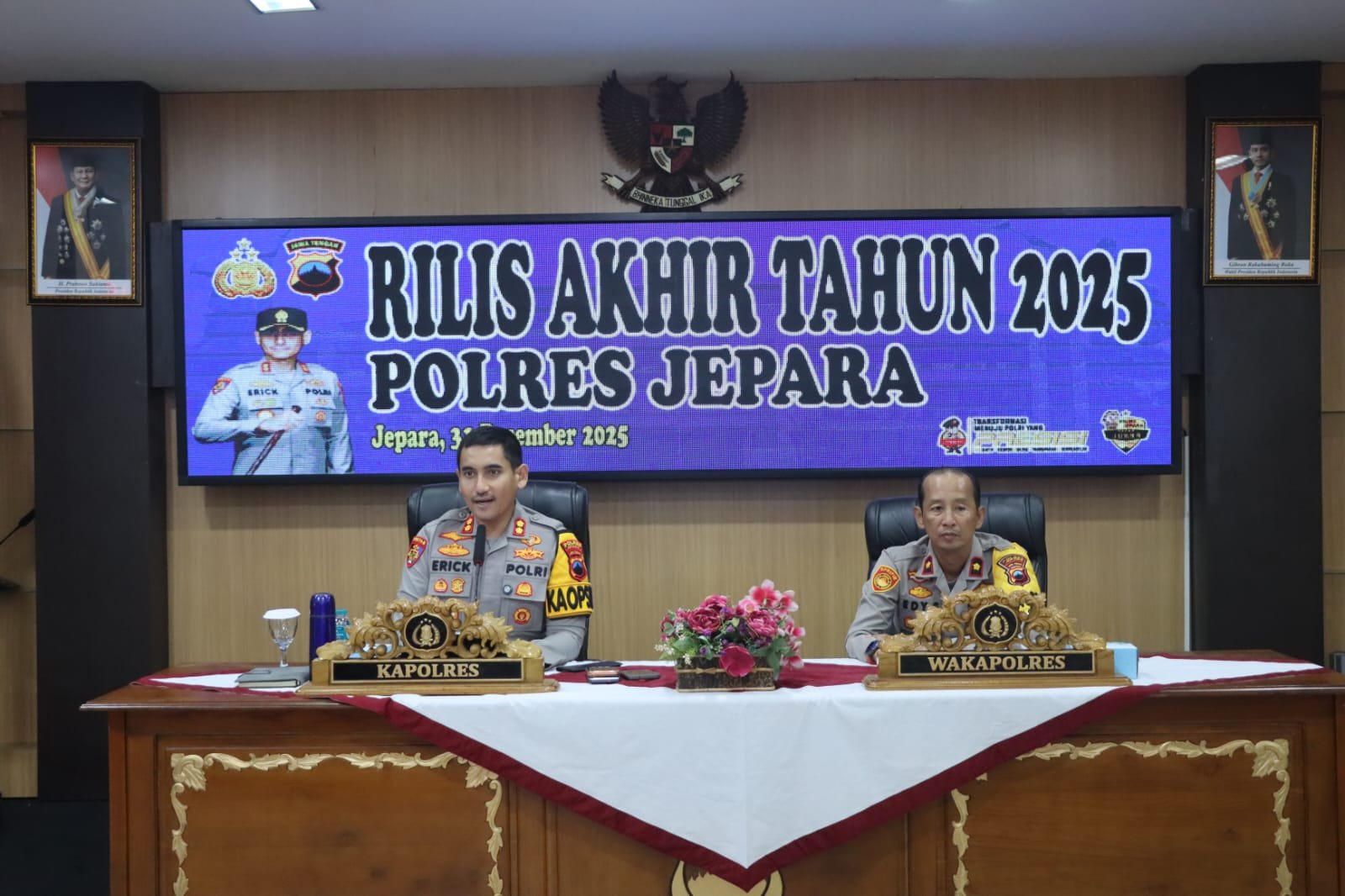 Jepara –BATAVIAINEWS.COM– Polres Jepara | Untuk memberikan gambaran kegiatan kepolisian yang telah dilakukan selama tahun 2025, Kepolisian Resor (Polres) Jepara, Polda Jawa Tengah, menggelar kegiatan konferensi pers akhir tahun yang diselenggarakan di aula Mapolres setempat, pada Rabu (31/12/2025).