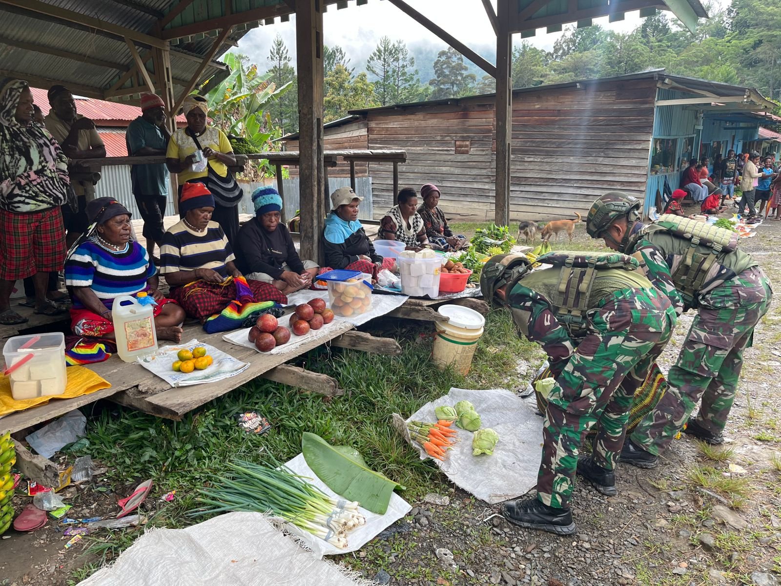 Roda Perekonomian Pasar Tradisional, Satgas Yonif 521/DY Hadir Dukung Kemajuan Masyarakat di Distrik Kelila