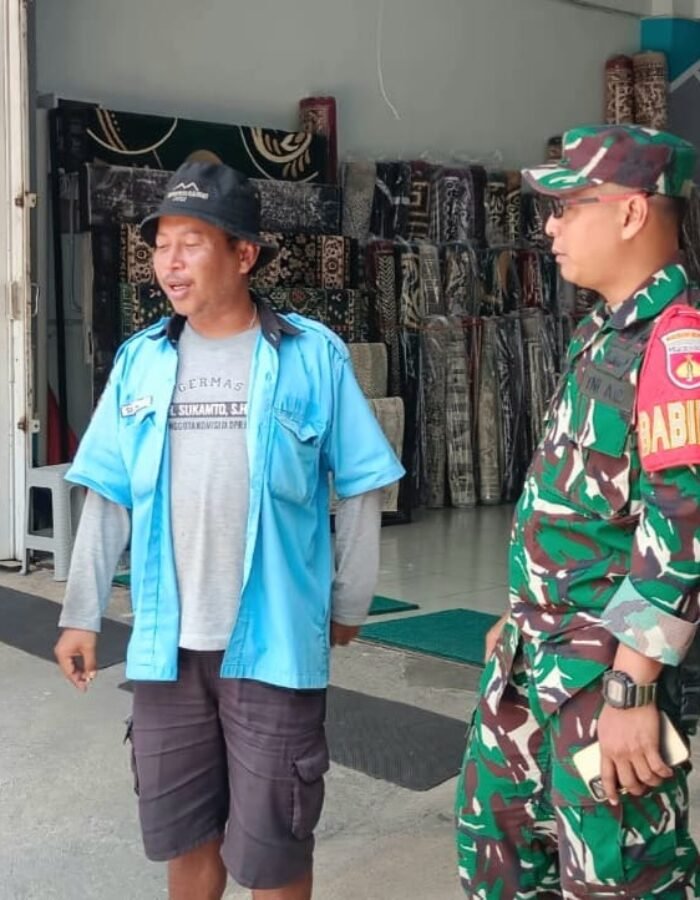 BATAVIAINEWS.COM SURAKARTA – Babinsa Kratonan Koramil 03/Serengan Kodim 0735/Surakarta Serka Aris Setyo Utomo dan Kopka Resbiyanto Bersama Bhabikamtibmas Aipda Danar Efendi Nasution S.H pukul 08.30 wib melaksanakan Kegiatan Komunikasi Sosial dengan Bapak Abdul Sebagai Juru Parkir di Toko Makmur Veteran (Toko Karpet Solo) Jl. Veteran No.162 Kratonan Serengan Kota Surakarta. Minggu (2 November 2025).