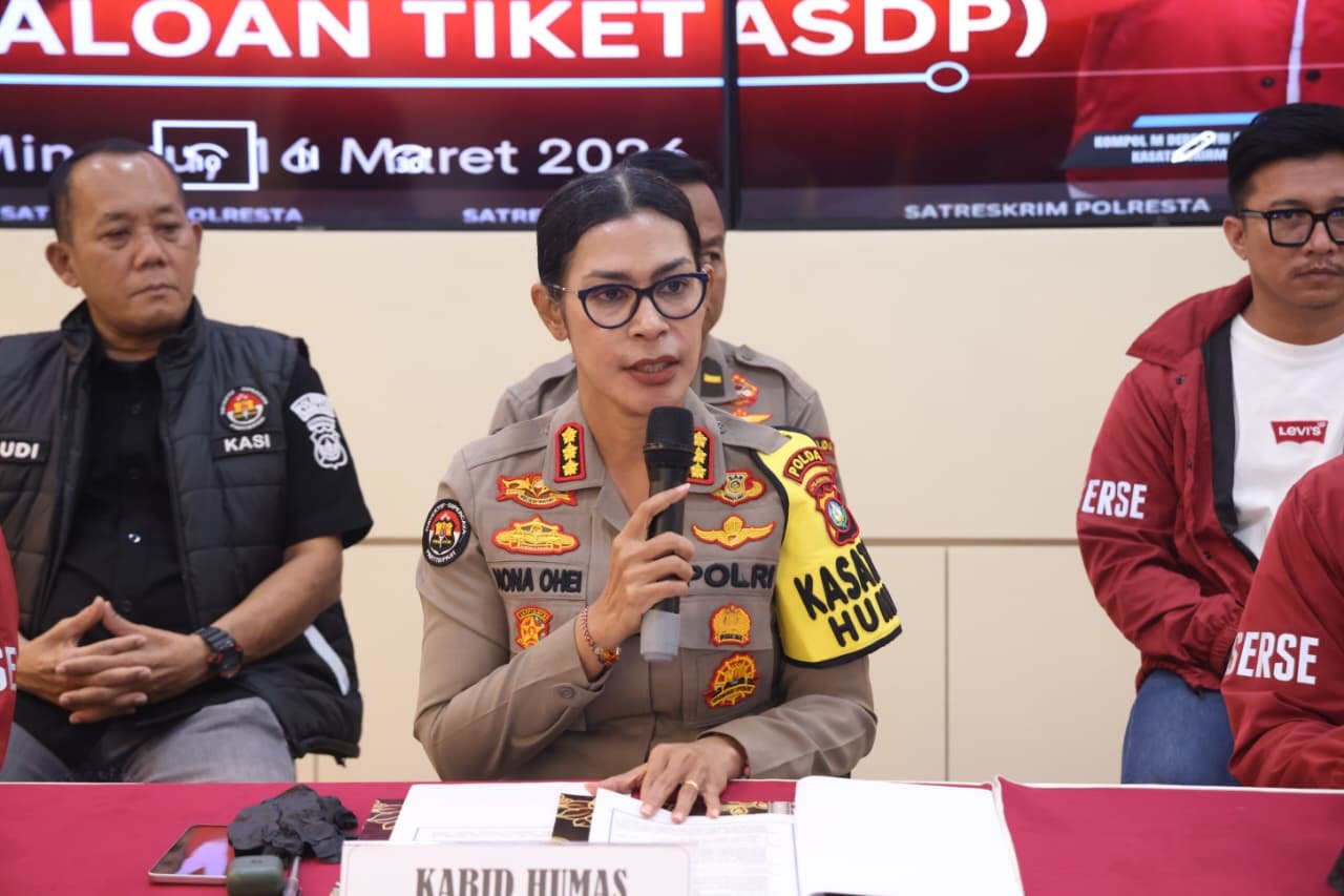 BATAVIAINEWS.COM Batam – Dalam rangka menjaga keamanan dan ketertiban masyarakat selama pelaksanaan Operasi Ketupat Seligi 2026 menjelang arus mudik Idul Fitri, Polresta Barelang bersama Tim Satgas Gakkum Seligi Ketupat 2026 berhasil mengungkap kasus tindak pidana penipuan percaloan yang dilakukan oleh oknum calo tiket kapal Roro di Pelabuhan ASDP Telaga Punggur, Kota Batam. Pengungkapan kasus ini merupakan respons cepat Kepolisian atas laporan masyarakat yang merasa dirugikan oleh praktik percaloan tiket di area pelabuhan. Hal tersebut disampaikan langsung oleh Kasatgas Humas Ops Ketupat Seligi 2026, Kabid Humas Polda Kepri Kombes Pol. Dr. Nona Pricillia Ohei, S.I.K., S.H., M.H., di Lobby Utama