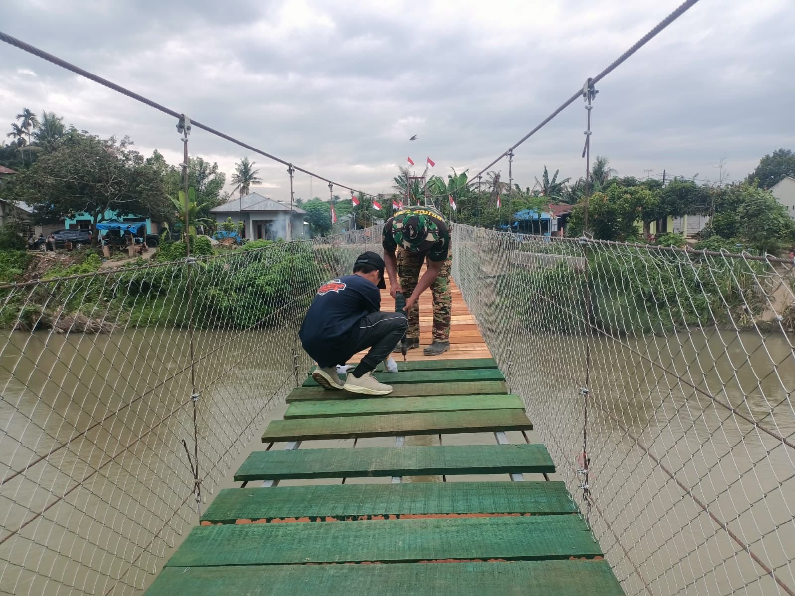 Satgas Gulbencal Kodam I/BB Lanjutkan Renovasi Jembatan Gantung Garuda di Deli Serdang