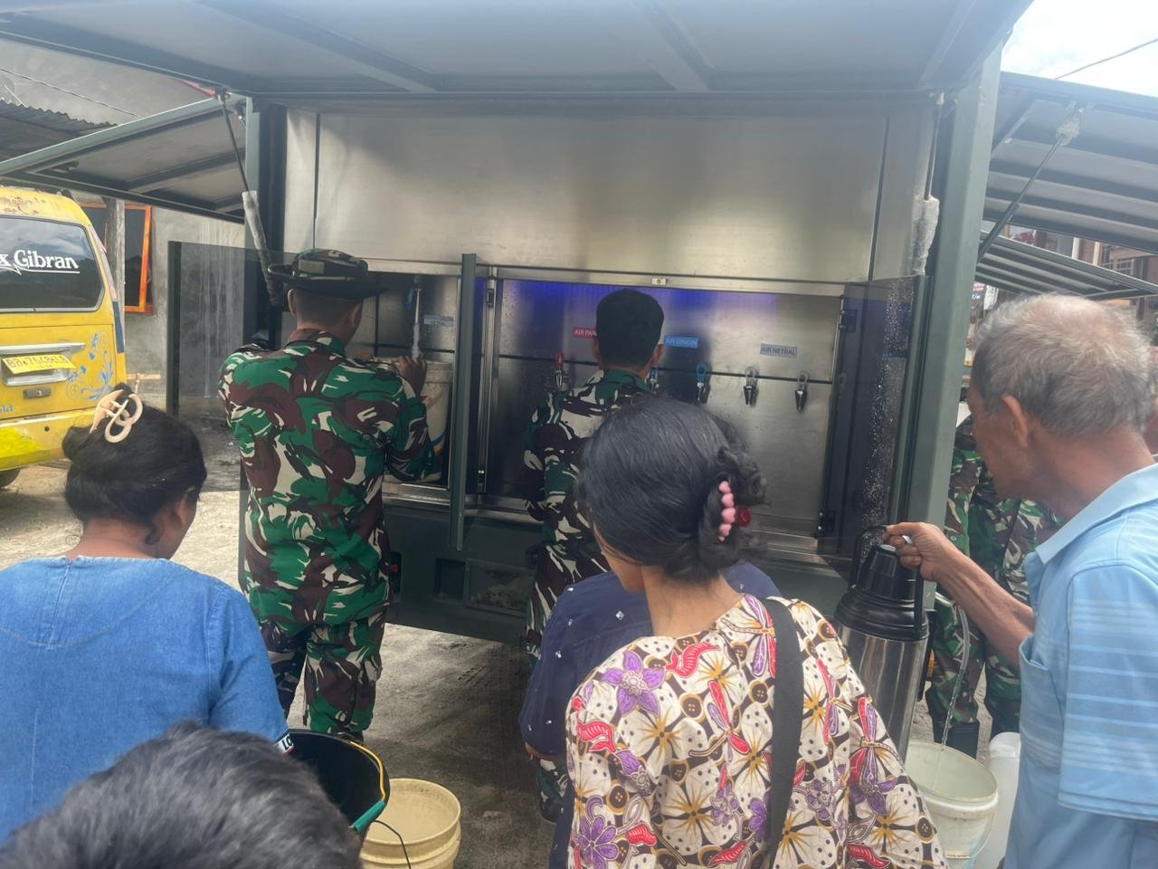 Satgas Gulbencal Kodam I/BB Operasionalkan Mobil RO Yon Zipur 1/DD untuk Penuhi Kebutuhan Air Bersih Warga