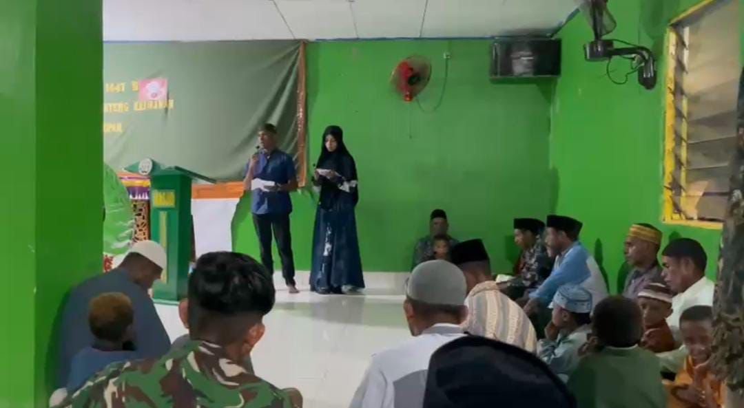 [ TELUK BINTUNI ] – Distrik Kamundan, Satgas Pamtas Kewilayahan Yonif 410/Alugoro mengikuti peringatan Isra Miraj Nabi Muhammad SAW 1447 Hijriah/2026 M yang diikuti oleh seluruh masyarakat Distrik Kamundan yang beragama Muslim. Kegiatan keagamaan ini bertujuan untuk meningkatkan keimanan serta ketakwaan kepada Allah SWT di kampung Mororo Distik Kamundan, Kab Teluk Bintuni. Senin, 19 Januari 2026.