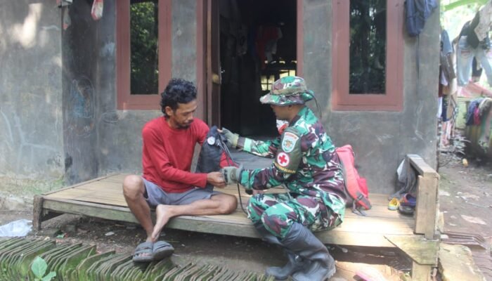 Bataviainews.com.PANDEGLANG – Dalam rangka mendukung kegiatan TNI Manunggal Membangun Desa (TMMD) ke-126 Tahun 2025, Satgas TMMD Kodim 0601/Pandeglang tidak hanya fokus pada pembangunan fisik, namun juga turut memperhatikan aspek kesehatan masyarakat di sekitar lokasi kegiatan. Salah satu bentuk kepedulian tersebut ditunjukkan melalui kegiatan pemeriksaan kesehatan gratis yang dilaksanakan oleh anggota Satgas TMMD, Serda Muhammad Rizal, kepada warga masyarakat di sekitar Desa Pakuluran, Kecamatan Kroncong, Kabupaten Pandeglang, pada Minggu (12/10/2025).