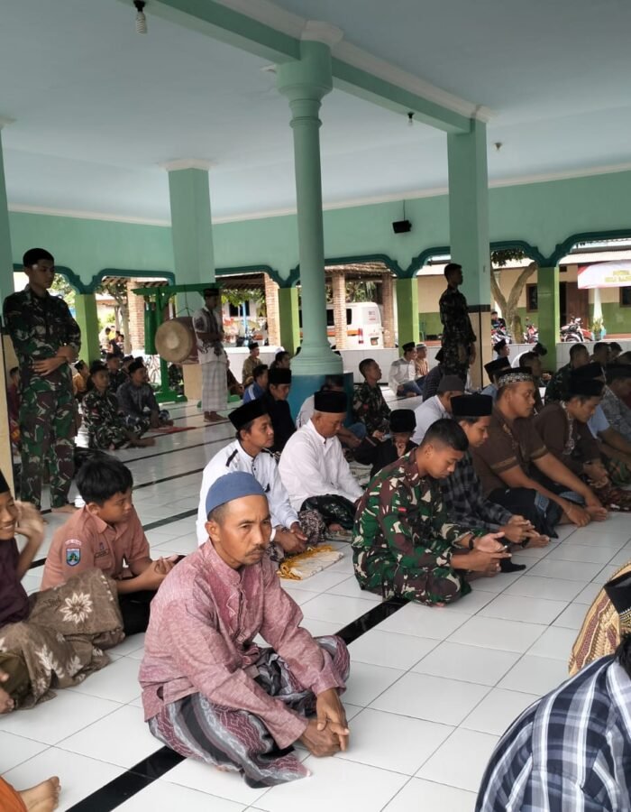 Guna meningkatkan Keimanan dan Ketaqwaan Personel Satgas TMMD (TNI Manunggal Membangun Desa) Ke 127 Tahun anggaran 2026 Kodim 0809/Kediri di Dusun Sumber Bahagia, Desa Gadungan, Kecamatan Puncu, Kabupaten Kediri, berbaur bersama warga tunaikan sholat Jumat (13/2/2026) berjamaah.