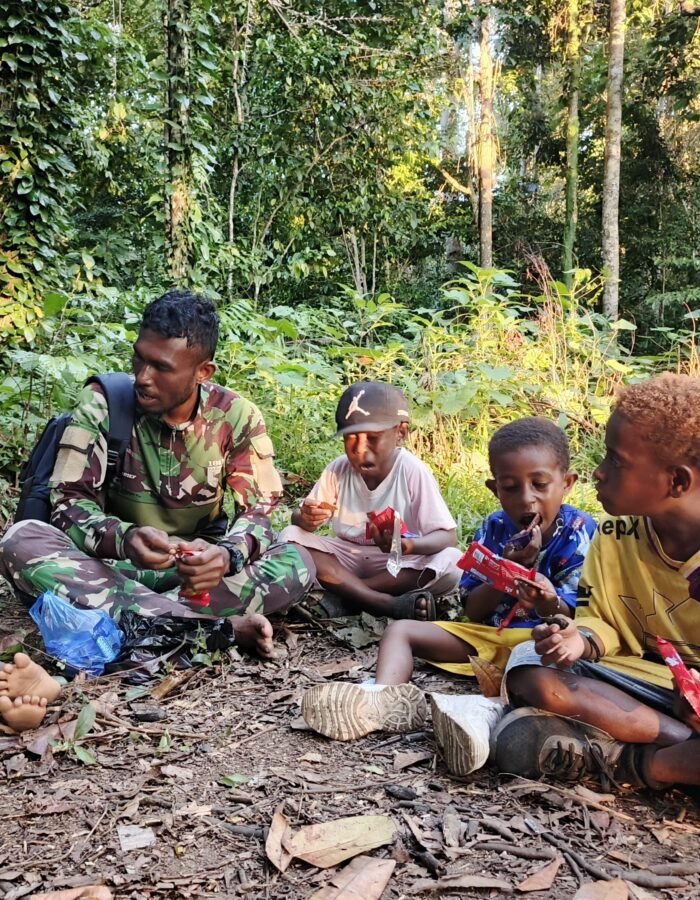 BATAVIAINEWS.COM Manokwari Utara – Anggota Satgas TMMD ke 128 Kodim 1801/Manokwari sering membagikan biskuit dan makanan ringan kepada anak-anak di lokasi sasaran. Aksi ini merupakan bentuk pendekatan humanis untuk membangun keakraban, memberikan keceriaan, serta mempererat kemanunggalan TNI dengan rakyat, sekaligus menyisipkan nasehat agar mereka rajin belajar, Rabu (29/04/2026).