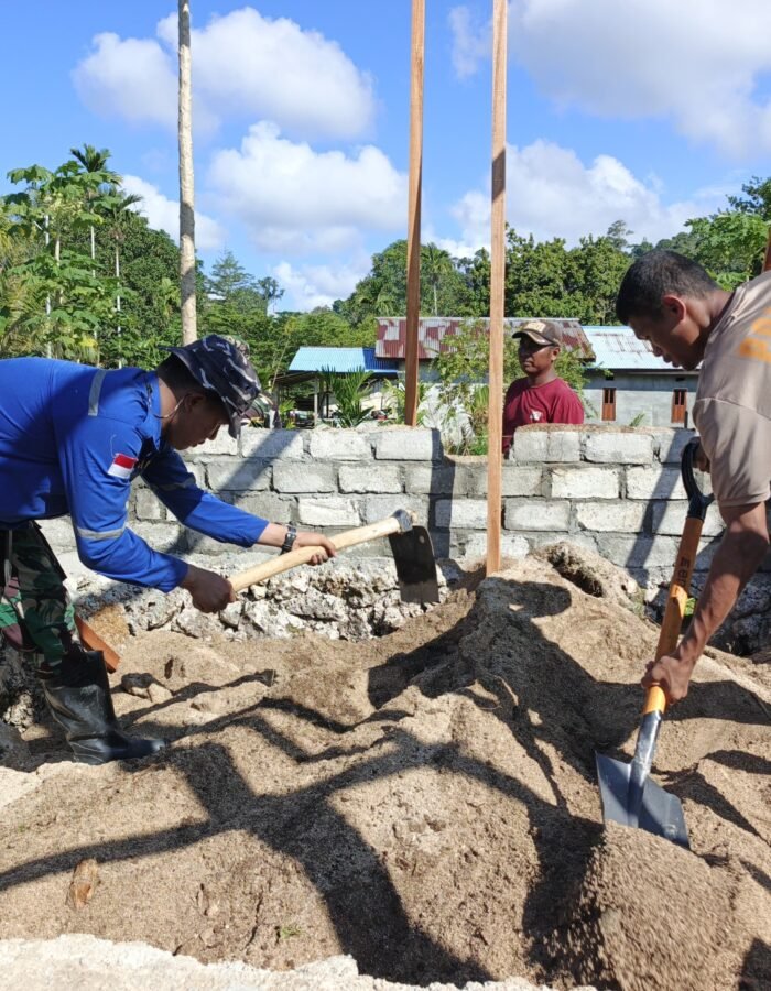 [BATAVIAINEWS.COM MANOKWARI UTARA ] – Anggota Satgas TMMD ke-128 Kodim Kodim 1801/Manokwari menunjukkan semangat kerja dalam mempercepat pembangunan sasaran fisik . Salah satu kegiatan yang dilakukan yaitu meratakan pondasi rumah warga di Kampung Tanah Rubuh, Distrik Manokwari Utara, Kabupaten Manokwari. Senin (27/4/2026).