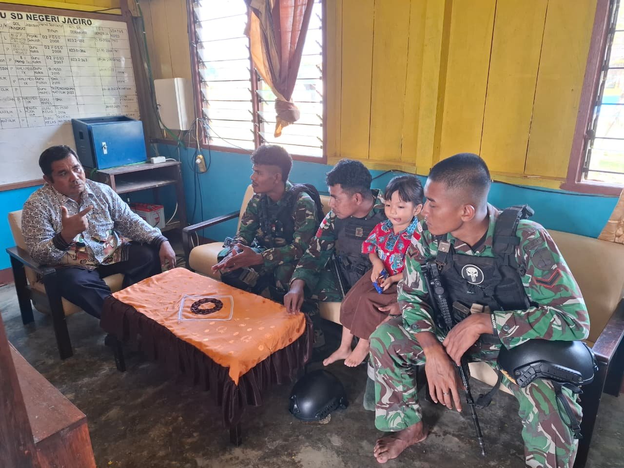 Satgas Yonif 410 Alugoro, Pos Jagiro, sedang melaksanakan kegiatan Komunikasi Sosial (Komsos) dikampung Jagiro, Distrik moskona selatan, Papua Barat. Dalam kegiatan ini, personel Satgas berdialog dengan warga, membahas tentang kebutuhan dan permasalahan masyarakat setempat, seperti akses ke fasilitas kesehatan dan pendidikan.