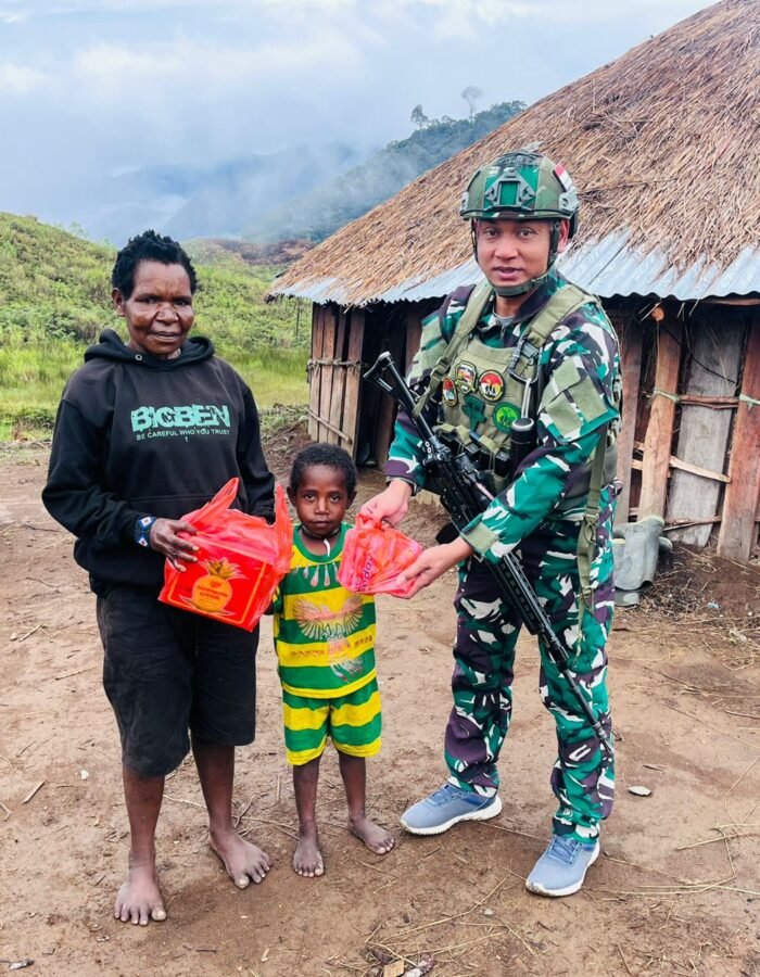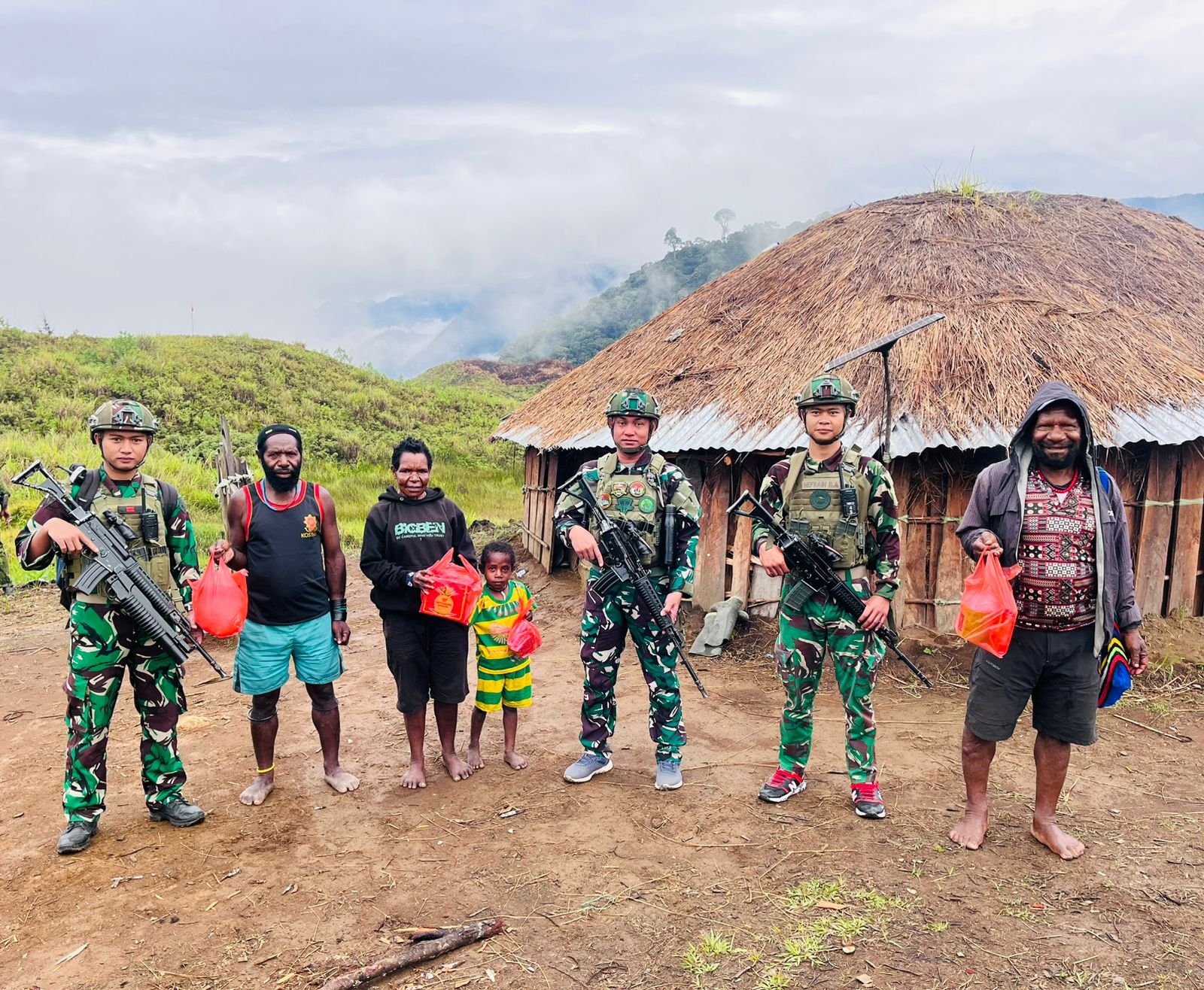“Saya senang sekali anak-anak TNI datang ke honai kami. Mereka bawa beras, biskuit, dan bibit. Kami merasa diperhatikan. Terima kasih sudah datang dan bantu kami, Tuhan berkati,” tutur Mama Mute dengan suara lembut namun penuh kehangatan.
