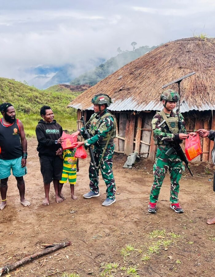 Kegiatan yang dipimpin oleh Serda Hermawan itu berlangsung di Honai Mama Mute, salah satu tokoh perempuan yang dikenal aktif dalam kehidupan sosial masyarakat Kampung Wako. Dalam kegiatan tersebut, prajurit Satgas membagikan beras, biskuit, serta bibit kacang panjang kepada warga sebagai bentuk dukungan terhadap kebutuhan pangan dan semangat ketahanan pangan masyarakat setempat.