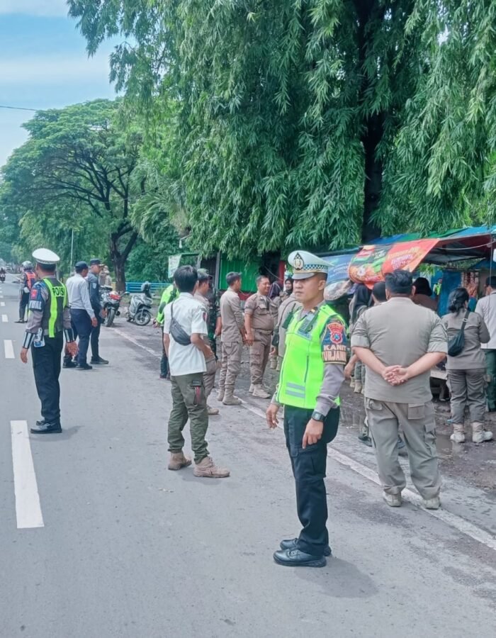 BATAVIAINEWS.COM PASURUAN – Satuan Lalu Lintas (Satlantas) Polres Pasuruan bersama instansi terkait menertibkan pedagang kaki lima (PKL) liar dan parkir liar di kawasan bawah jembatan tol Bundaran Sirkel Gempol, Kabupaten Pasuruan, Senin (16/2/2026).