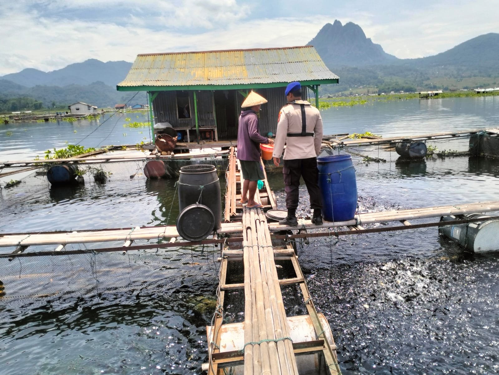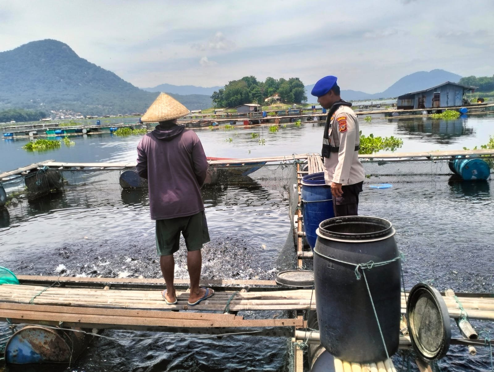 Di Perairan Paranggombong, personel Satpolairud menyambangi Pak Tarman, salah satu peternak keramba. Dalam kesempatan tersebut, petugas mengingatkan agar selalu mengurangi kecepatan saat berlayar dan wajib menggunakan pelampung demi mencegah kecelakaan air.