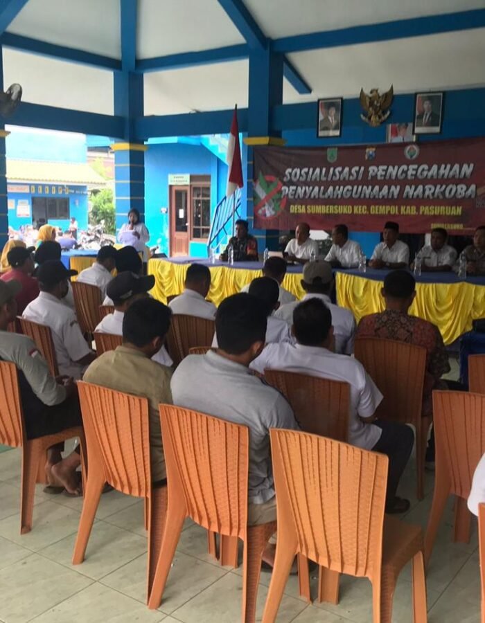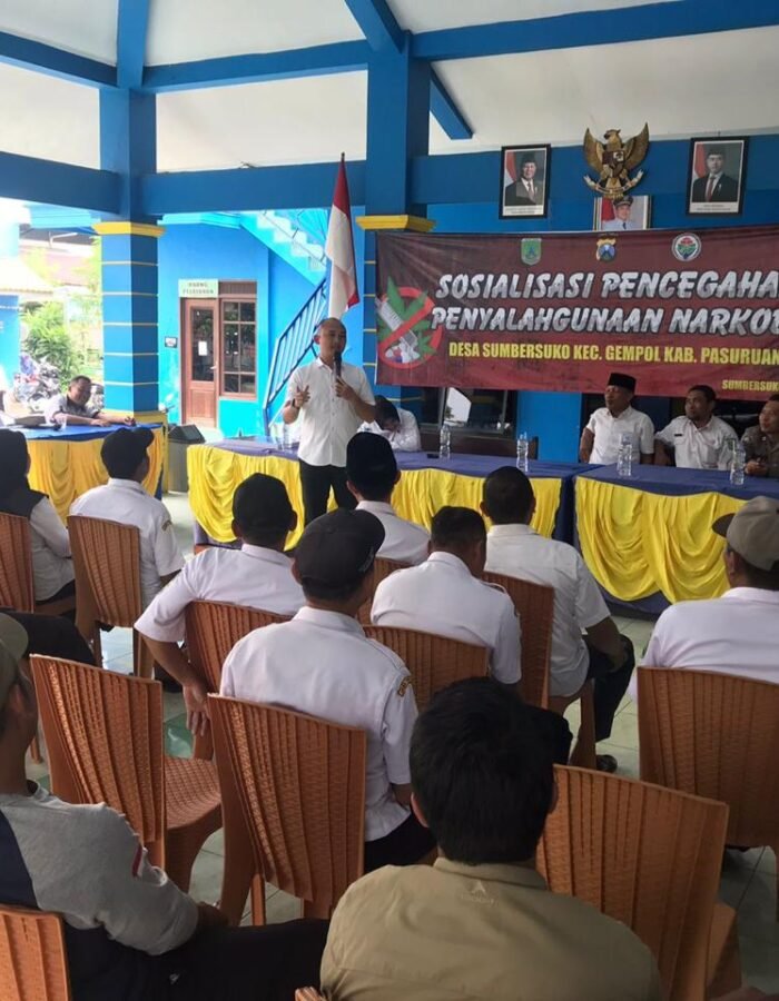 PASURUAN, BATAVIAINEWS.COM — Satuan Reserse Narkoba (Satresnarkoba) Polres Pasuruan menggelar kegiatan sosialisasi dan penyuluhan bertema “Bahaya Penyalahgunaan dan Peredaran Gelap Narkoba” di Balai Desa Sumbersuko, Kecamatan Gempol, Kabupaten Pasuruan, Rabu (12/11).