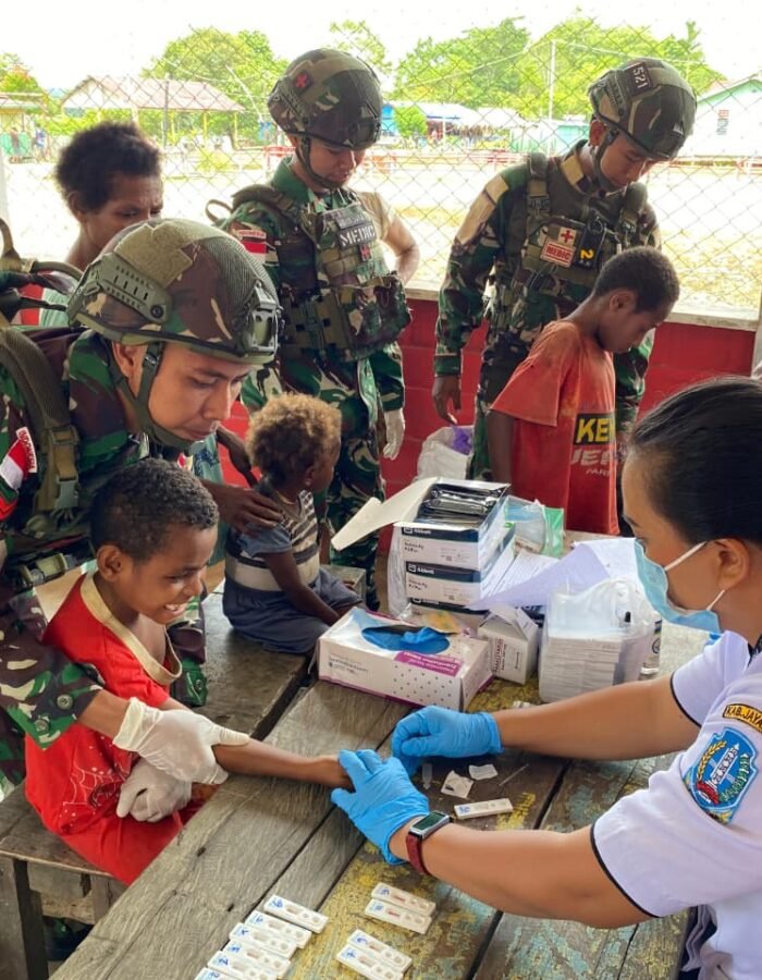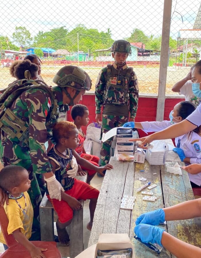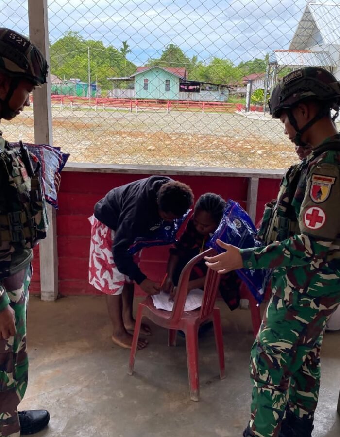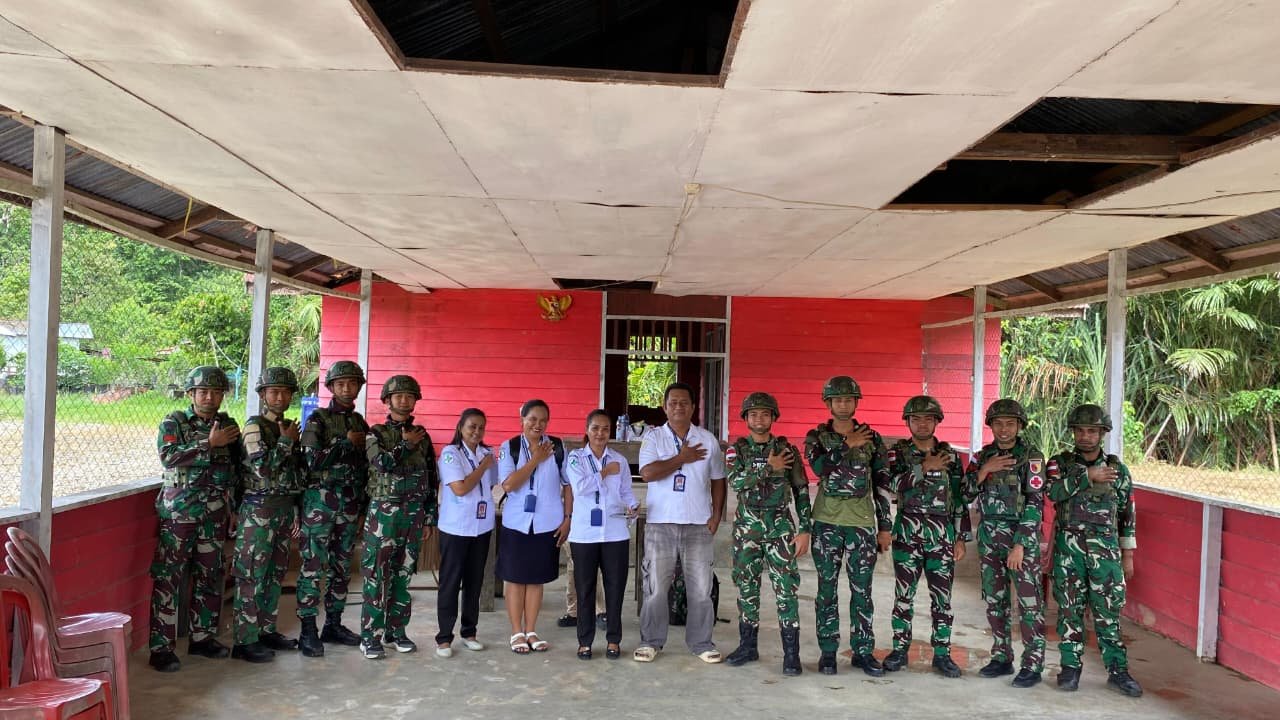Satgas Yonif 521/DY Pos Muaranawa menjalin sinergi erat dengan Puskesmas Distrik Airu di Kabupaten Jayapura, (13/11/2025). Melalui pelayanan kesehatan terpadu dan kegiatan penyuluhan kesehatan bagi masyarakat setempat. Kolaborasi ini bertujuan untuk meningkatkan kualitas kesehatan warga di pedalaman Papua yang memiliki keterbatasan akses medis.