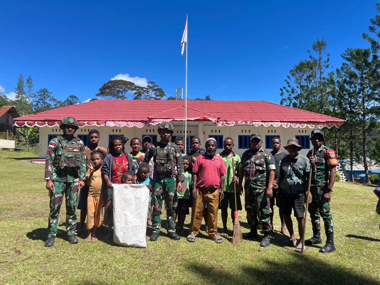 Sinergi Menuju Papua Lebih Indah, Satgas Yonif 521/DY Bersama Babinsa dan Warga Gelar Karya Bakti di Kelila
