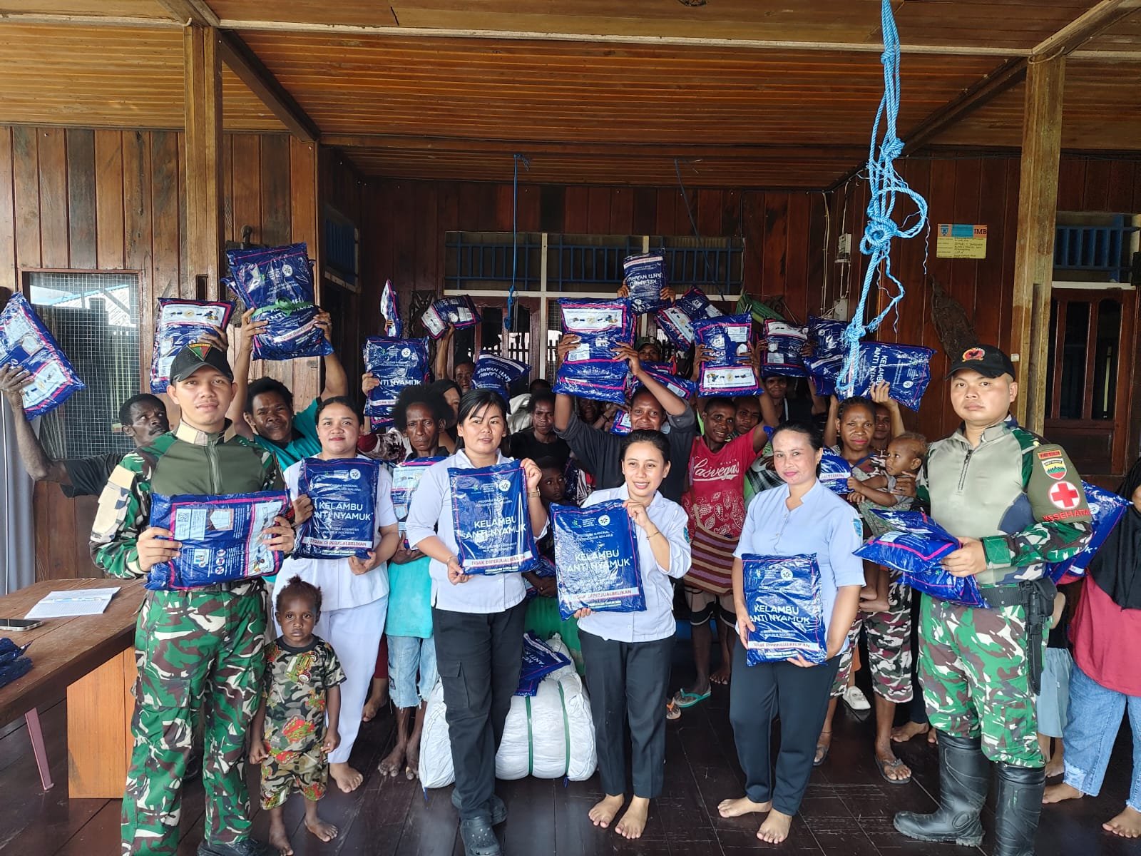 Kegiatan ini meliputi pelayanan kesehatan bagi bayi, balita, dan lansia, seperti penimbangan berat badan, pengecekan kesehatan, pemberian vitamin, serta edukasi kesehatan dasar. Selain itu, masyarakat juga menerima pembagian kelambu sebagai upaya pencegahan penyakit malaria yang masih menjadi ancaman di wilayah pedalaman Papua.