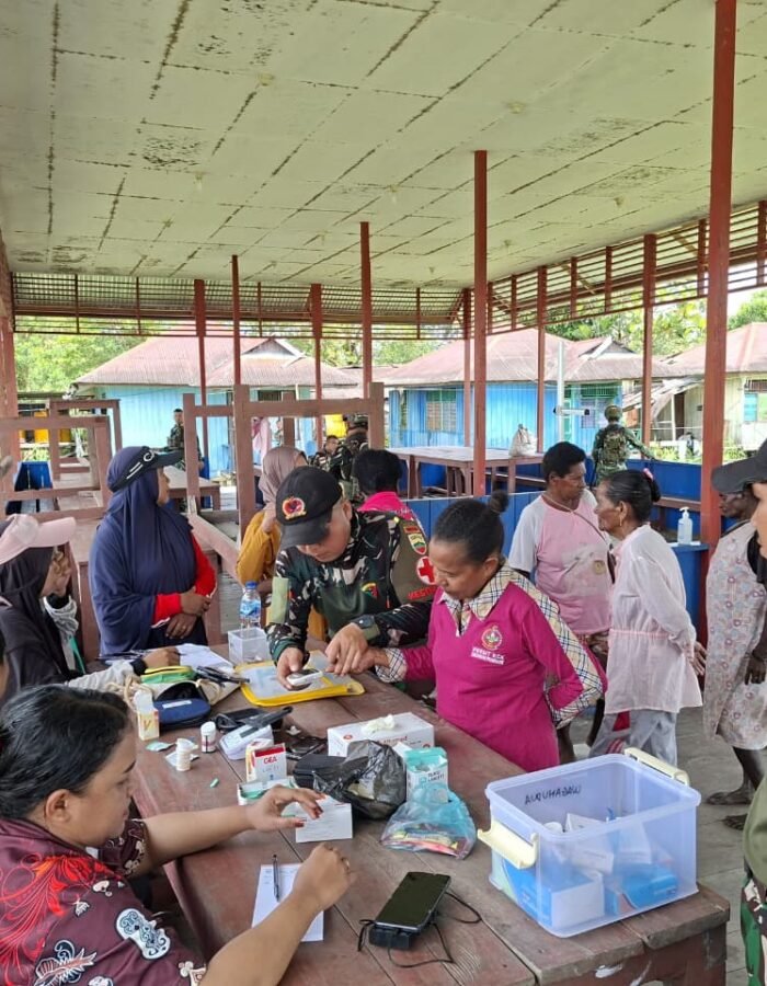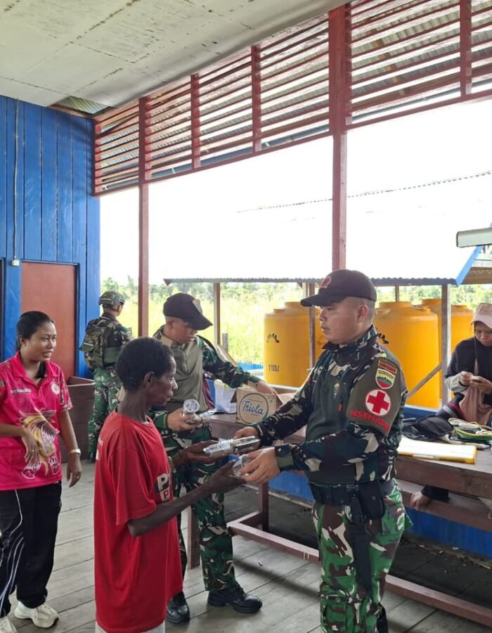 BATAVIAINEWS.COM – ASMAT – Personel Pos Suator Satgas kewilayahan Yonif 123/Rajawali bersama tenaga medis Puskesmas Distrik Suator melaksanakan kegiatan Pos Pelayanan Terpadu (Posyandu) serta pembagian kelambu kepada masyarakat, Selasa (06/01/2026), bertempat di Kampung Binam dan Kampung Emnam, Distrik Suator, Kabupaten Asmat.