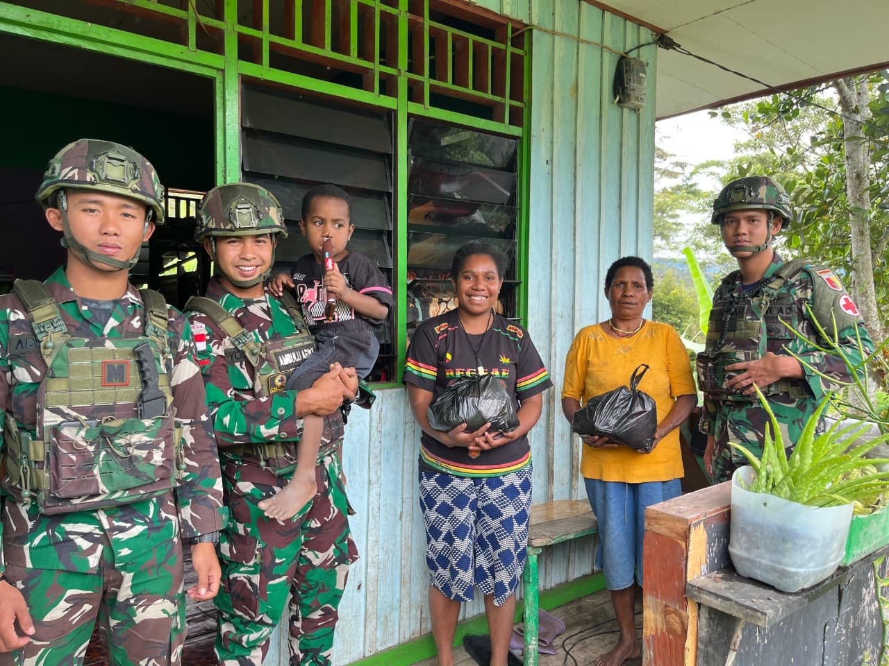 Hangatnya kebersamaan terasa di Distrik Kelila Satgas Yonif 521/DY hadir tak hanya menjaga, tetapi juga peduli.