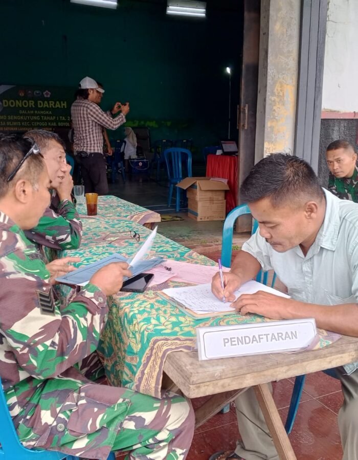 BATAVIAINEWS,COM Boyolali — Program TNI Manunggal Membangun Desa (TMMD) Sengkuyung Tahap I Kodim 0724/Boyolali tak hanya fokus pada pembangunan infrastruktur. Di Desa Mliwis, Kecamatan Cepogo, Satgas TMMD menggelar kegiatan donor darah di Balai Desa Mliwis, Senin (16/02/26), sebagai bagian sasaran non-fisik untuk meningkatkan kesehatan masyarakat.