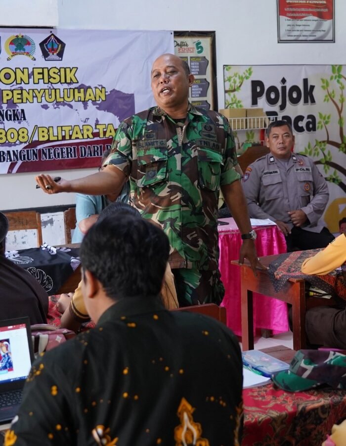 BATAVIAINEWS.COM Blitar – Personel Satgas TNI Manunggal Membangun Desa (TMMD) ke-127 Kodim 0808/Blitar terus menggencarkan sasaran non-fisik dengan memberikan pembekalan Wawasan Kebangsaan (Wasbang) kepada generasi muda. Kali ini, Kapten Inf Slamet memberikan materi langsung kepada siswa-siswi SDN Krisik 04 di Desa Krisik Kecamatan Gandusari Kabupaten Blitar, Jumat (6/3/2026).