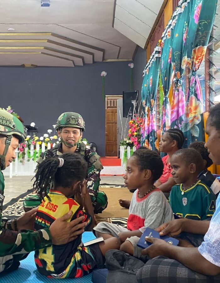 Menyampaikan bahwa kegiatan ini merupakan bagian dari upaya TNI untuk hadir di tengah masyarakat tidak hanya dalam aspek keamanan, tetapi juga dalam kehidupan sosial dan spiritual. “Kami ingin berbagi kasih dan memberikan semangat kepada saudara-saudara kita di Papua, agar tetap kuat dalam iman serta menjalani kehidupan dengan penuh harapan,” ujarnya.