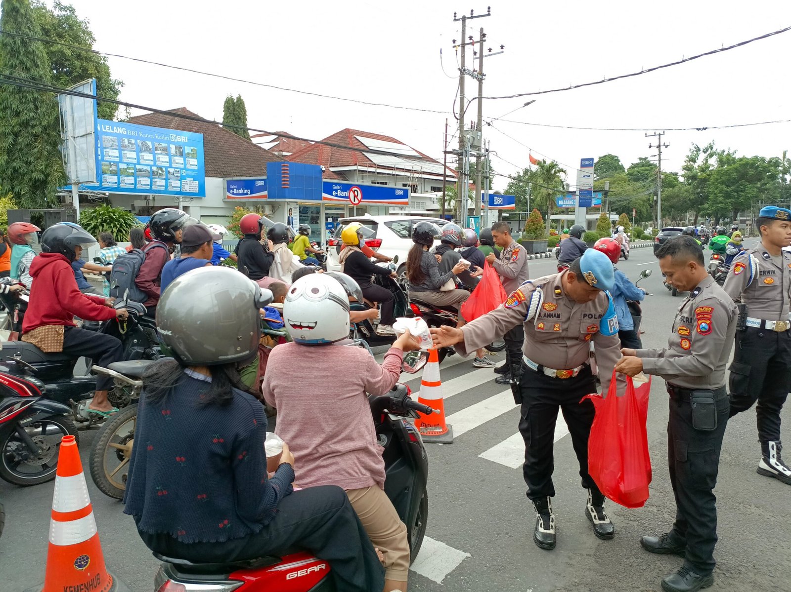 Kegiatan sosial ini dilaksanakan menjelang waktu berbuka puasa. Personel kepolisian tampak turun langsung ke jalan, menyapa masyarakat dengan ramah sembari membagikan paket takjil kepada pengendara roda dua, roda empat, hingga pejalan kaki yang melintas.