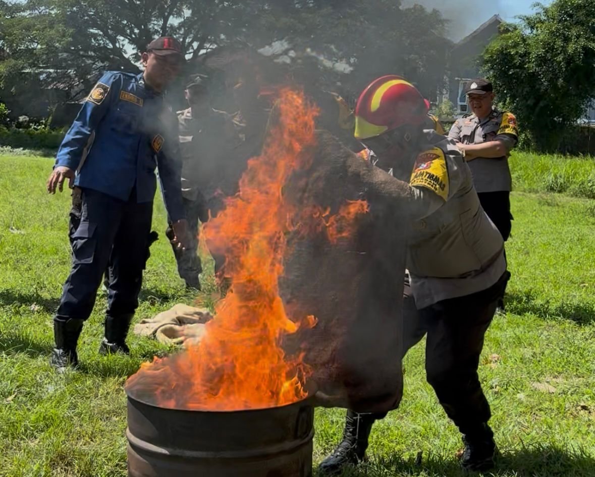 Puncak latihan adalah Simulasi Penanganan Kebakaran, di mana para Bhabinkamtibmas secara langsung mempraktikkan: