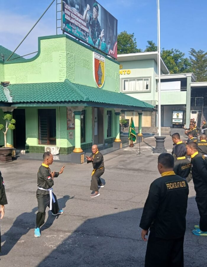 BATAVIAINEWS.COM Blitar – Dalam upaya meningkatkan profesionalisme dan kemampuan prajurit, personel Kodim 0808/Blitar secara aktif melaksanakan latihan Pencak Silat Militer (PSM). Kegiatan ini dilaksanakan secara rutin sebagai bagian dari pembinaan fisik dan keterampilan bela diri prajurit, bertempat di halaman Makodim 0808/Blitar, Kamis (2/4/2026).