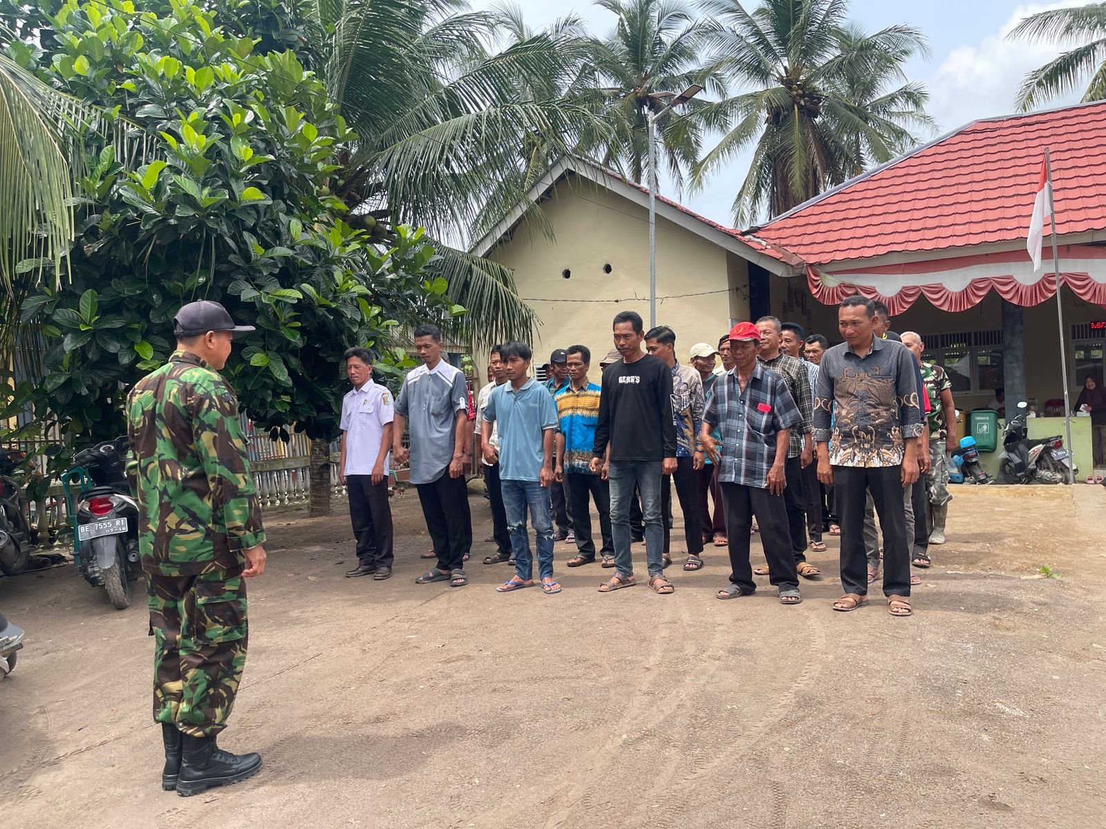 Seusai sosialisasi, Satgas TNI juga memberikan pelatihan Peraturan Baris Berbaris (PBB) kepada Linmas dan masyarakat. Kegiatan ini bertujuan menumbuhkan disiplin, kekompakan, serta meningkatkan kesiapsiagaan warga dalam menjaga keamanan lingkungan.
