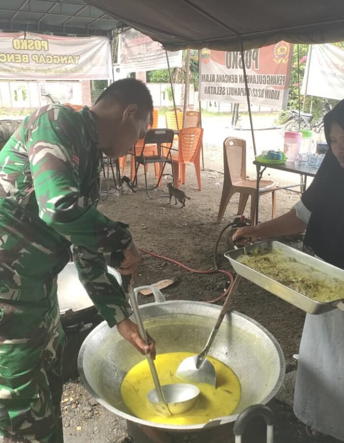 TNI Terus Operasikan Dapur Umum bagi Warga Terdampak Bencana Alam Banjir di Sayurmatinggi, Tapsel