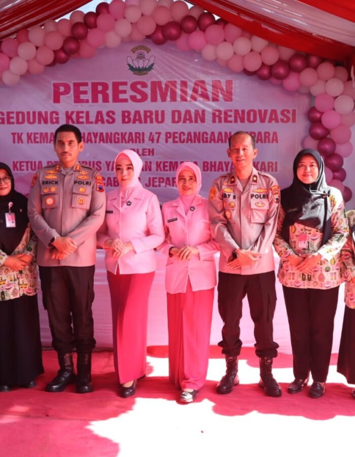 Jepara – BATAVIAINEWS.COM-Polres Jepara | Kepala Kepolisian Resor (Kapolres) Jepara AKBP Erick Budi Santoso didampingi Ketua Bhayangkari Cabang Jepara Ny. Dessy Erick Budi Santoso meresmikan gedung kelas baru dan renovasi TK Kemala Bhayangkari 47 Pecangaan Jepara, pada Rabu (17/12/2025) pagi.