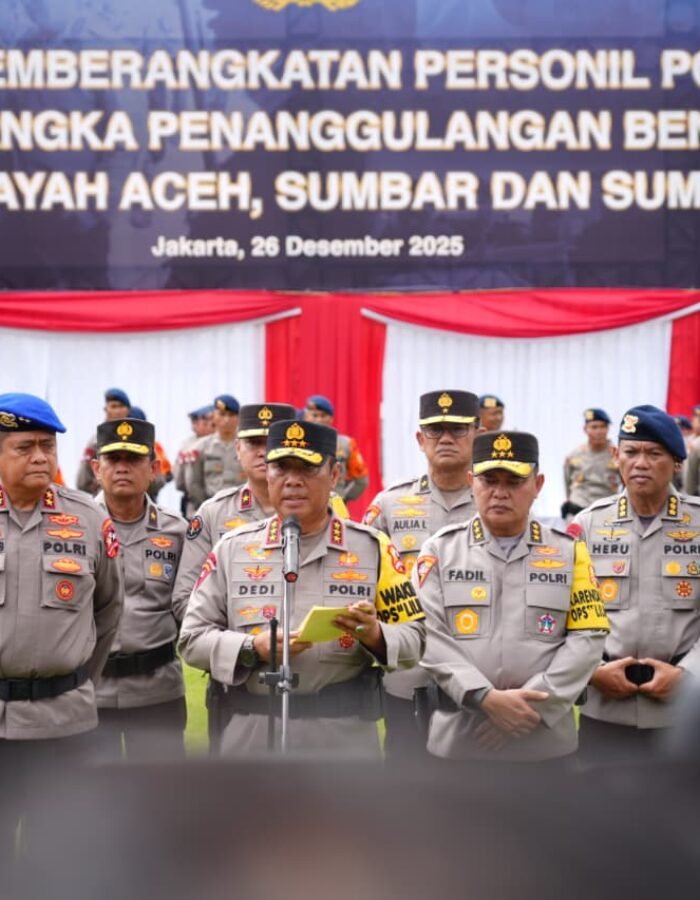 JAKARTA-BATAVIAINEWS.COM-Wakapolri Komjen Pol Prof. Dr. Dedi Prasetyo menegaskan komitmen Polri untuk terus hadir di tengah masyarakat melalui apel pemberangkatan personel Polri dalam rangka penanggulangan bencana di Aceh, Sumatera Utara, dan Sumatera Barat. Apel digelar di Lapangan Bhayangkara Mabes Polri, Jumat (26/12/2025).