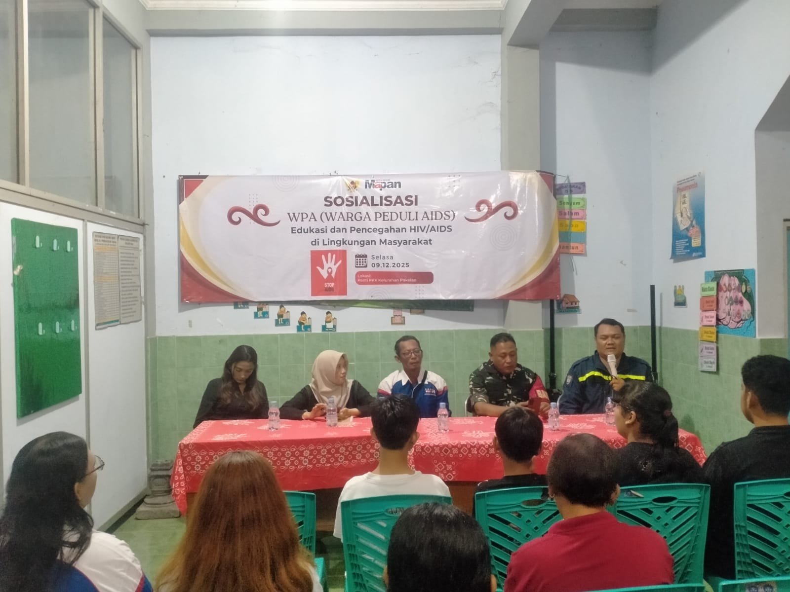 Kediri Kota –BATAVIAINEWS.COM– Panti PKK Kelurahan Pakelan, Kecamatan Kota Kediri, menjadi lokasi sosialisasi Warga Peduli AIDS (WPA) pada Selasa (9/12/2025). Acara ini dihadiri oleh Sundariani, Kepala Kelurahan Pakelan, Agus Siswanto, Koordinator WPA Kelurahan Pakelan, serta perwakilan dari Dinas Kesehatan Kota Kediri.