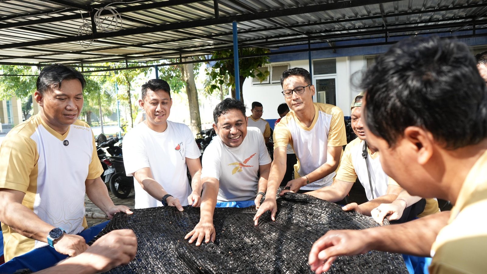 Kegiatan diawali olahraga bersama seluruh jajaran pegawai untuk menjaga kebugaran guna mendukung produktivitas kerja dalam mengawal program strategis pemerintah. Setelah itu, dilanjutkan penebaran bibit nila dan pembagian hasil panen nila dari bibit sebelumnya kepada warga sekitar.