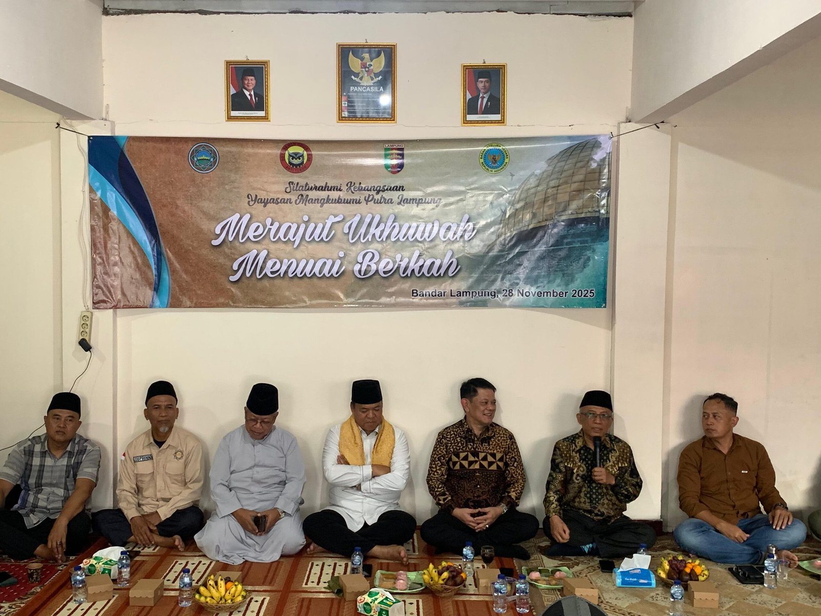 BATAVIAINEWS.COM Bandar Lampung – Yayasan Mangkubumi Putra Lampung (YMPL) menggelar kegiatan Silaturahmi Kebangsaan dengan tema “Merajut Ukhuwah Menuai Berkah” pada Jumat, 28 November 2025, bertempat di Sekretariat YMPL Kota Bandar Lampung. Kegiatan berlangsung hangat dan penuh kekeluargaan, dihadiri sekitar 60 anggota eks napiter beserta keluarga, serta sejumlah tokoh pemerintah, akademisi, dan pemuka agama.