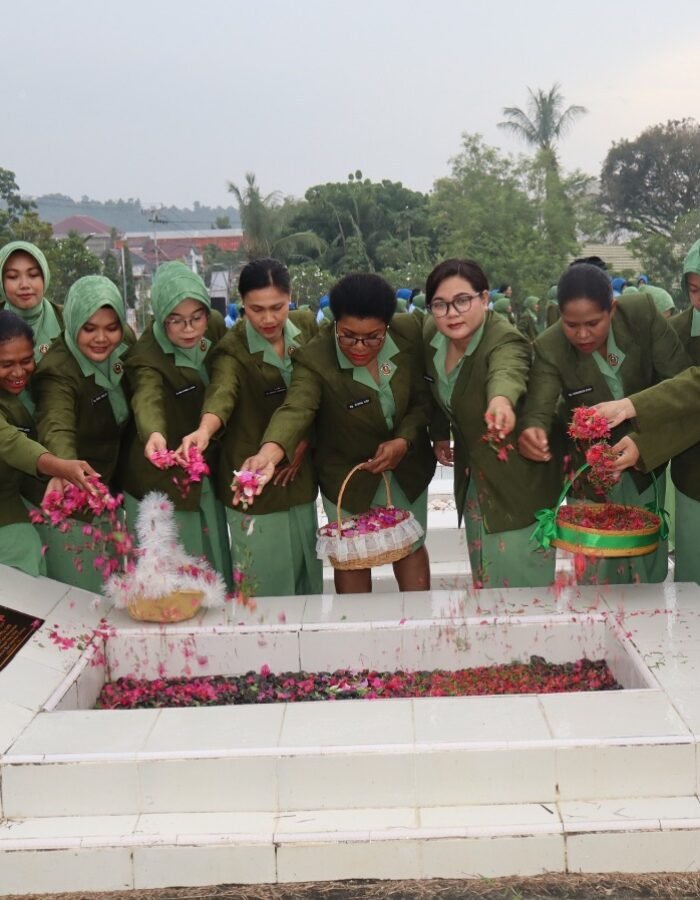 Kegiatan diikuti oleh pengurus Dharma Pertiwi Daerah P, pengurus Persit KCK Cabang XII Kodim 1801/Manokwari, perwakilan Persit KCK Cabang XXII Brigif TP 84/UA, serta Persit KCK Cabang XLV Yonif 761/KA. Kebersamaan yang terjalin mencerminkan soliditas dan semangat Persit dalam menjaga nilai-nilai perjuangan serta penghormatan kepada para Pahlawan.